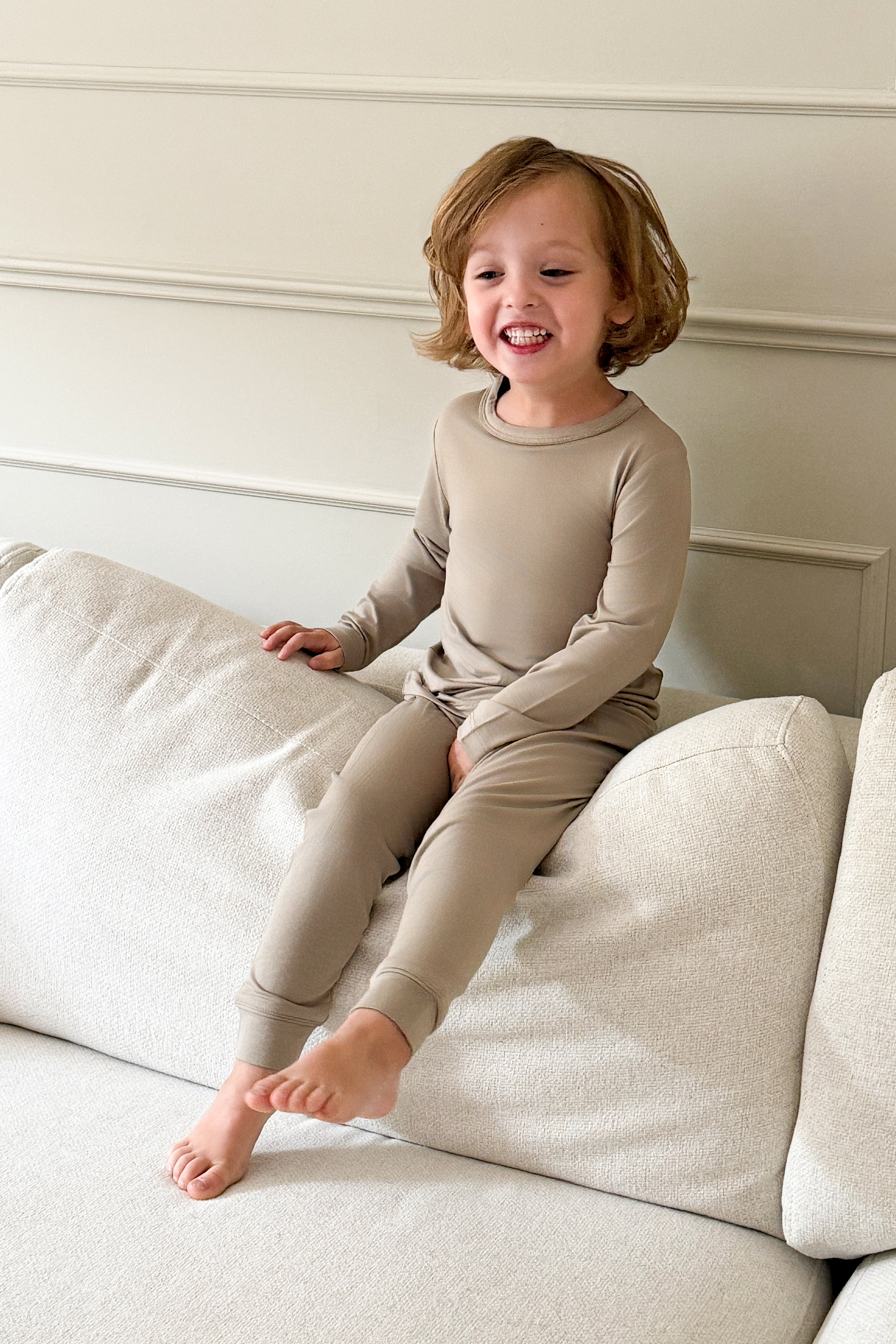 Our Mini Muse Bamboo Pyjamas in Driftwood bring softness and simplicity to your little one’s routine. This calming neutral set is cool, comfy, and perfect for easy bedtimes and cosy mornings.
